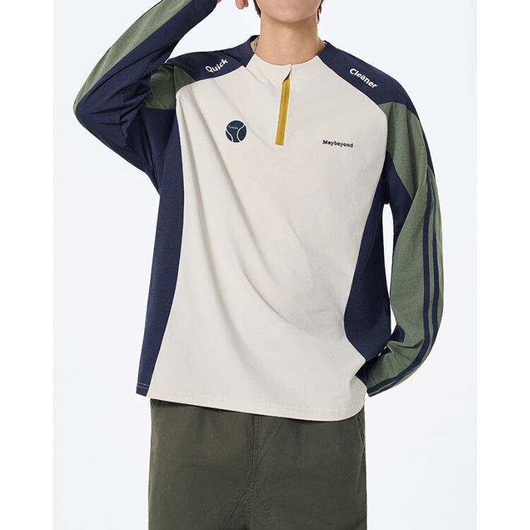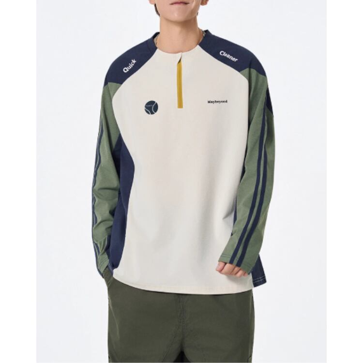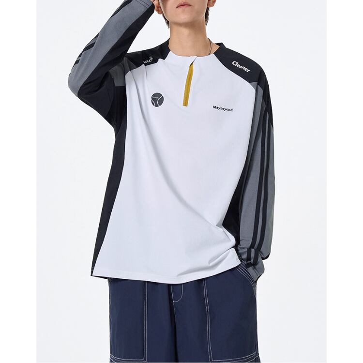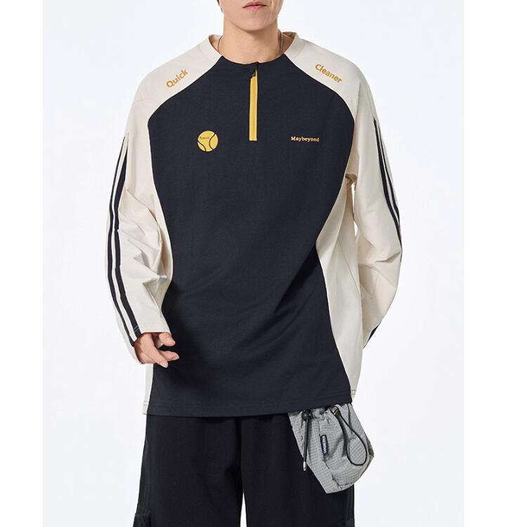 目を引く配色デザインが、あなたの個性を引き立てる長袖プルオーバーTシャツ。