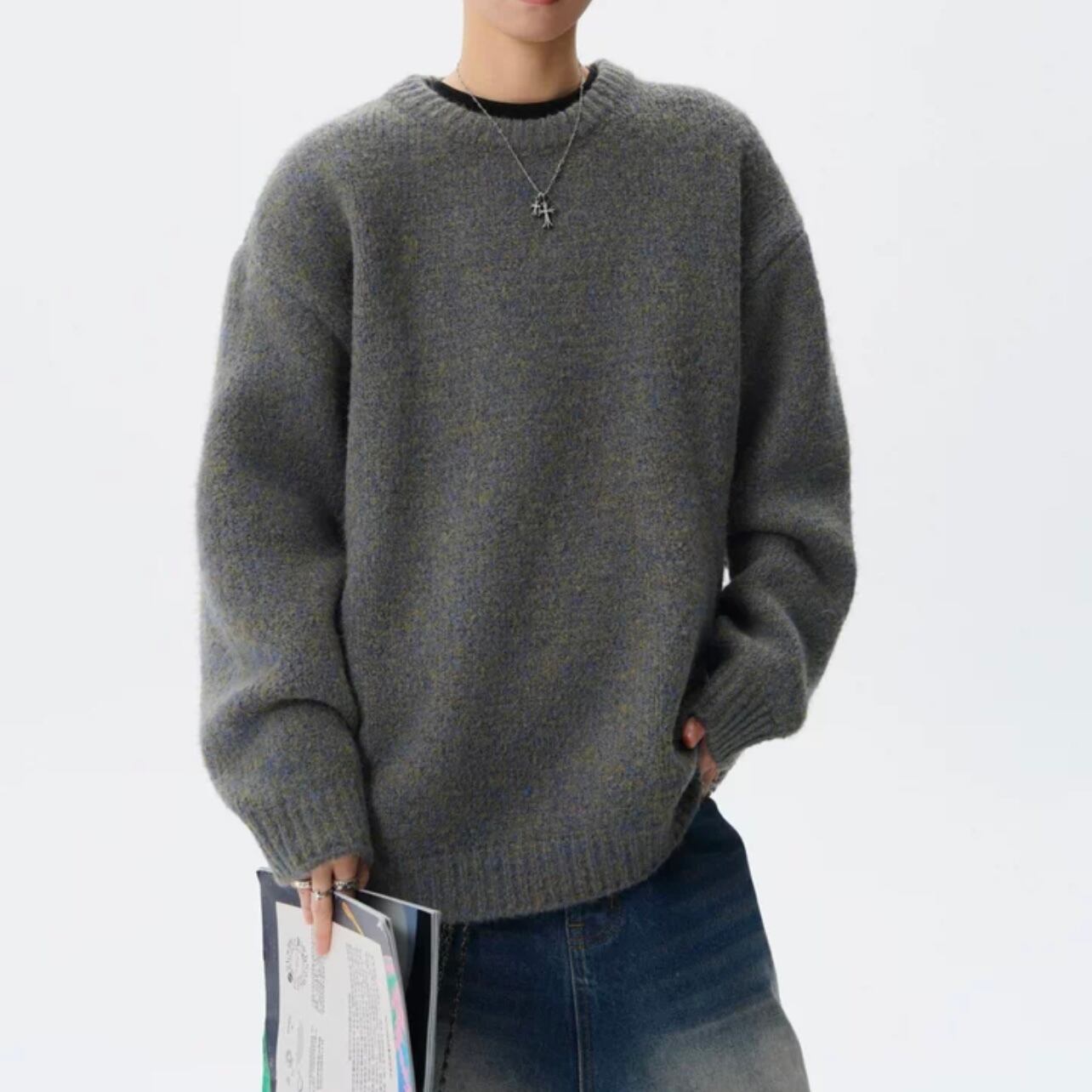 ゆったりとしたシルエットが魅力のクルーネックニット。