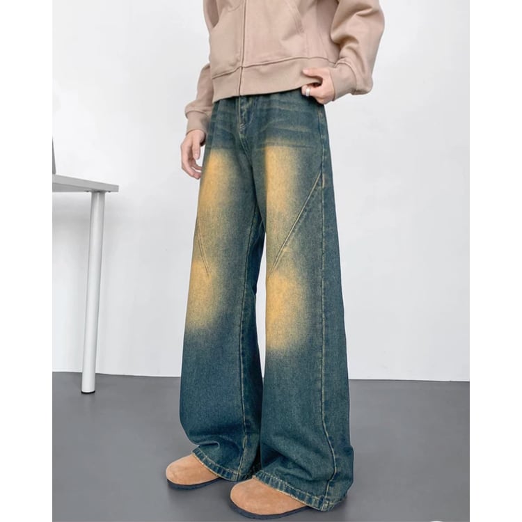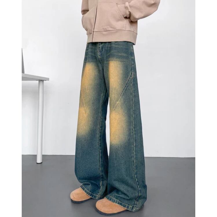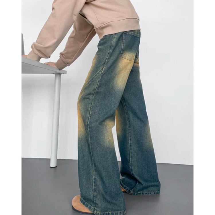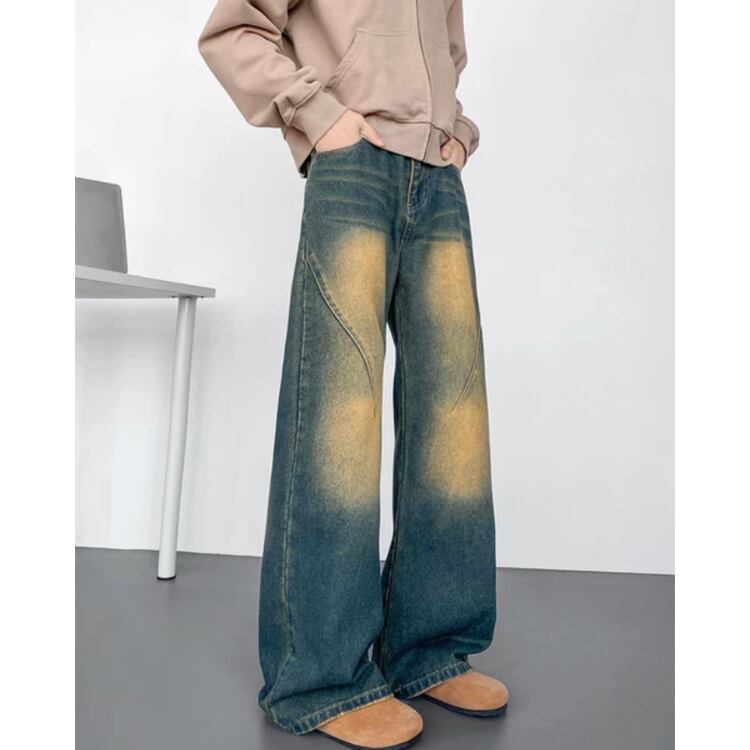 ルーズなシルエットが魅力のストレート丈ジーンズ。