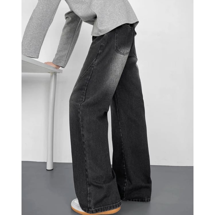 ワイド ストレート ブラック ジーンズ ◆2col M00016