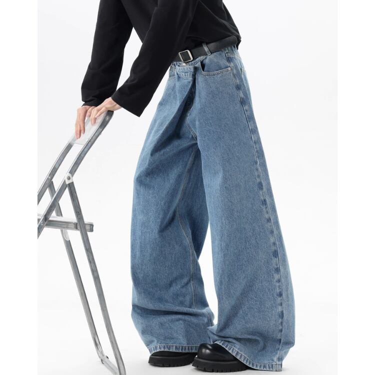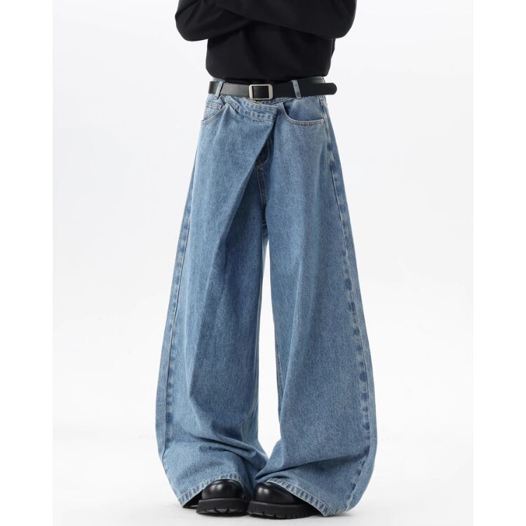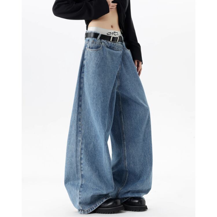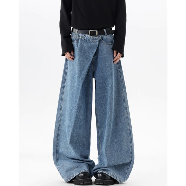 ラップ風 ワイド フルレングス デニムパンツ M00023