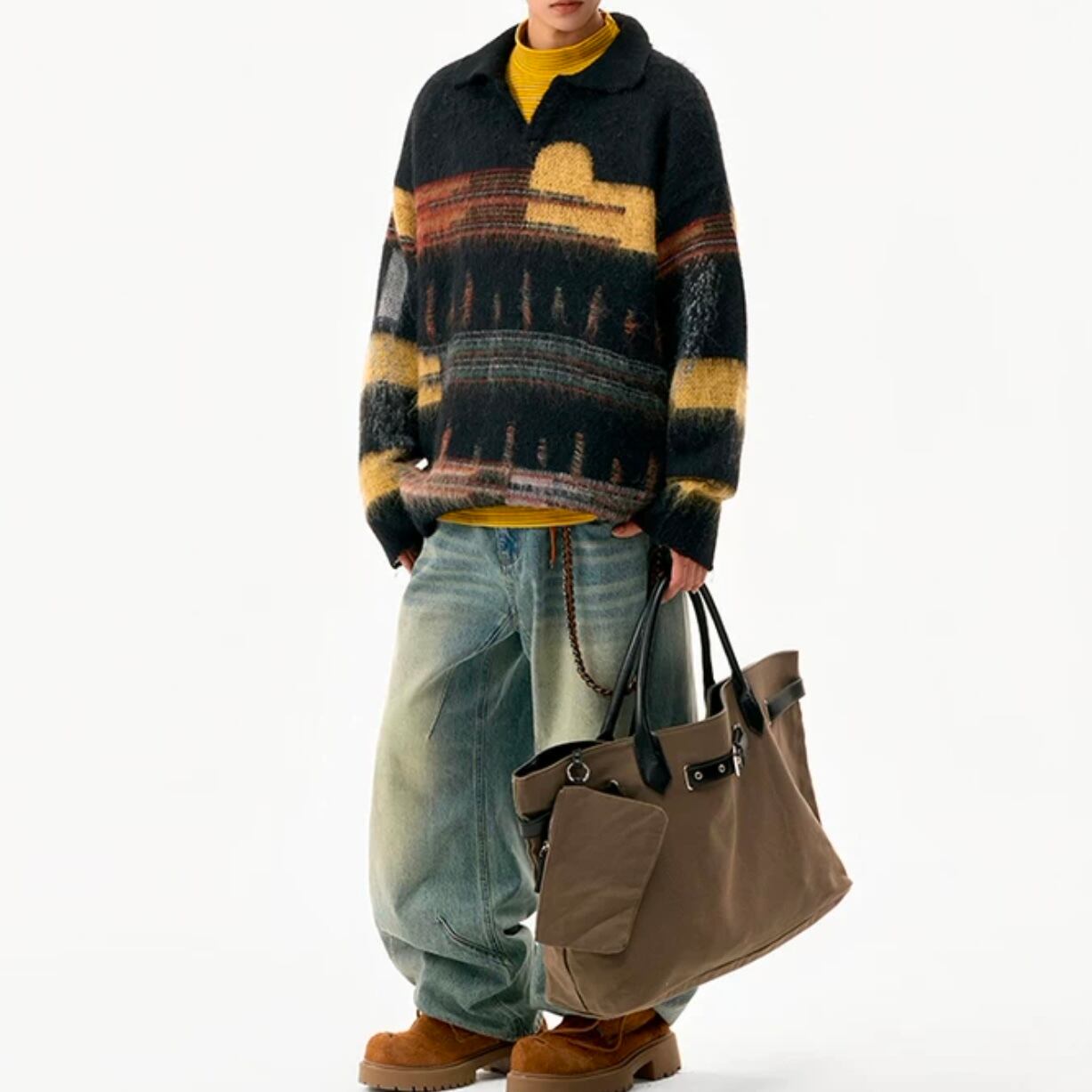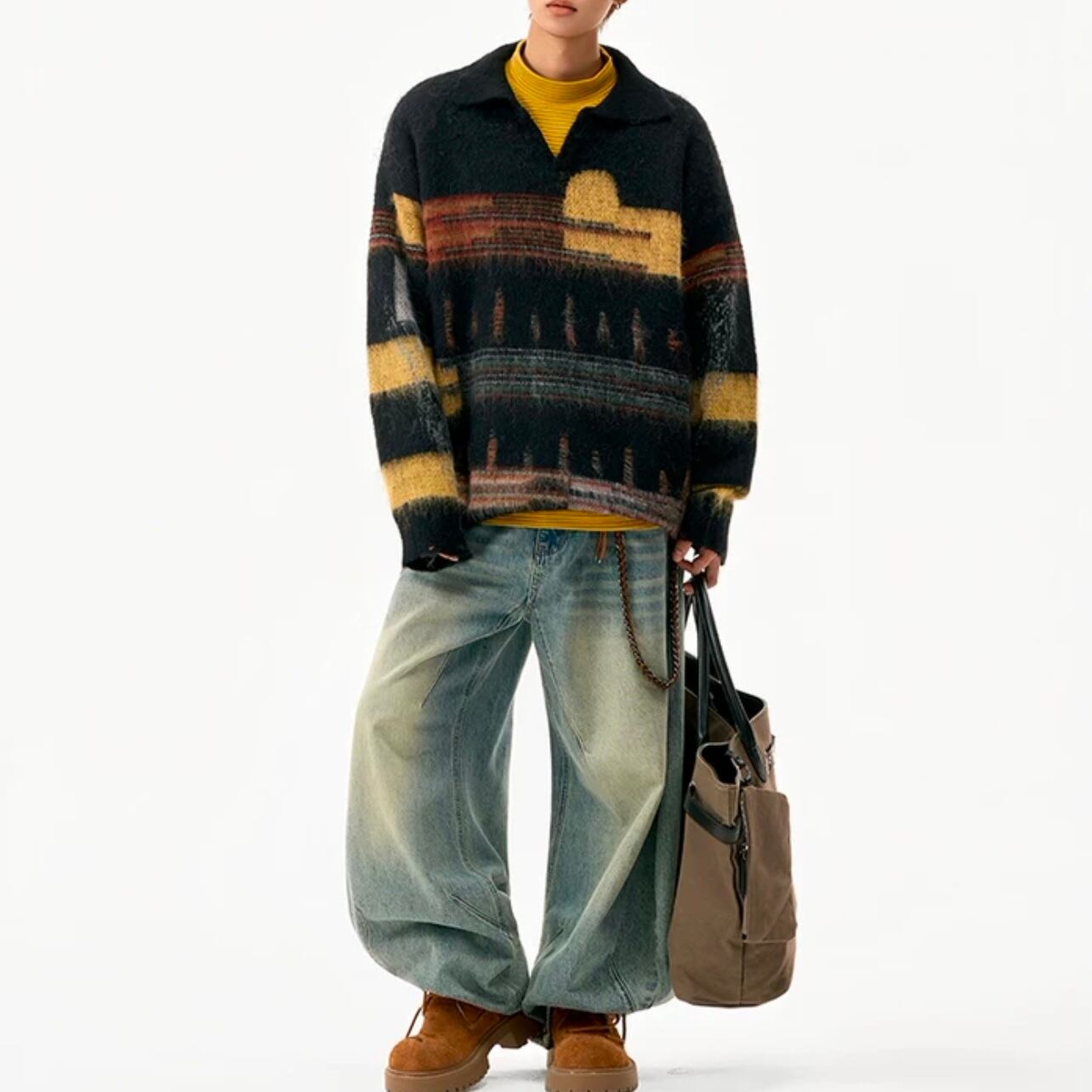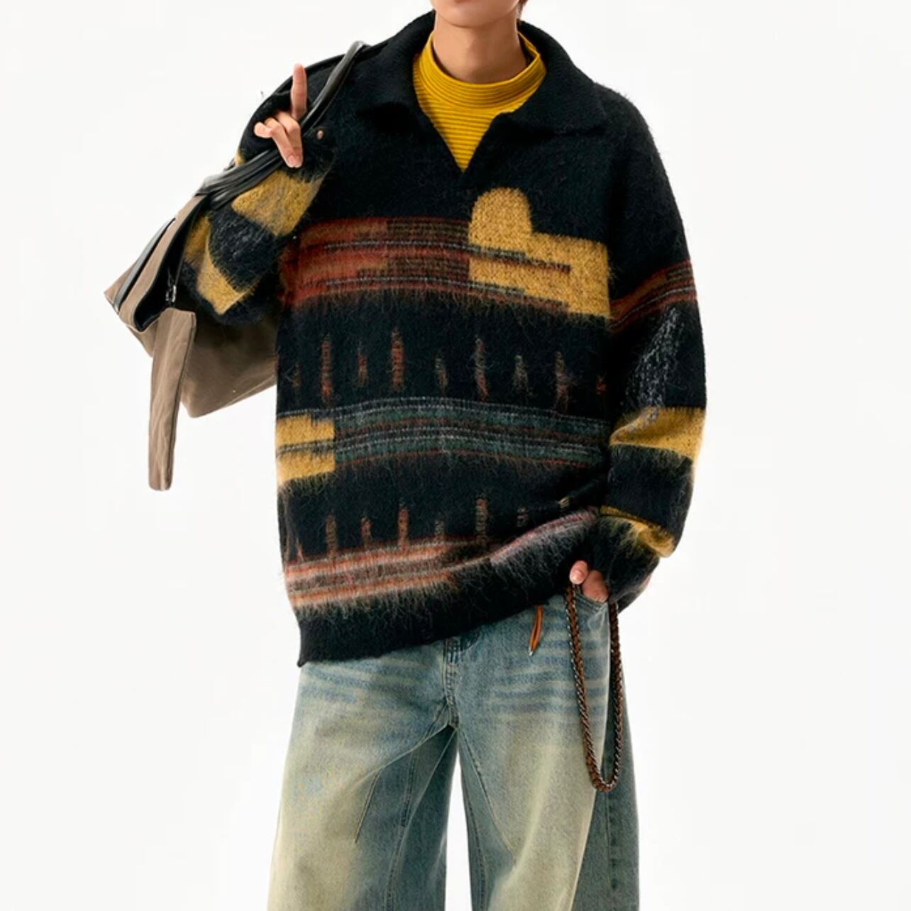 オープンカラー ヒップ 長袖 ニットポロシャツ M00026