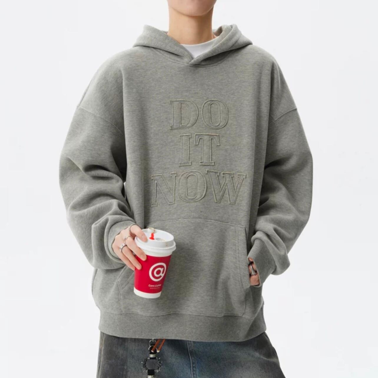 フロントには印象的なロゴがデザインされており、カジュアルながらも個性を演出します。