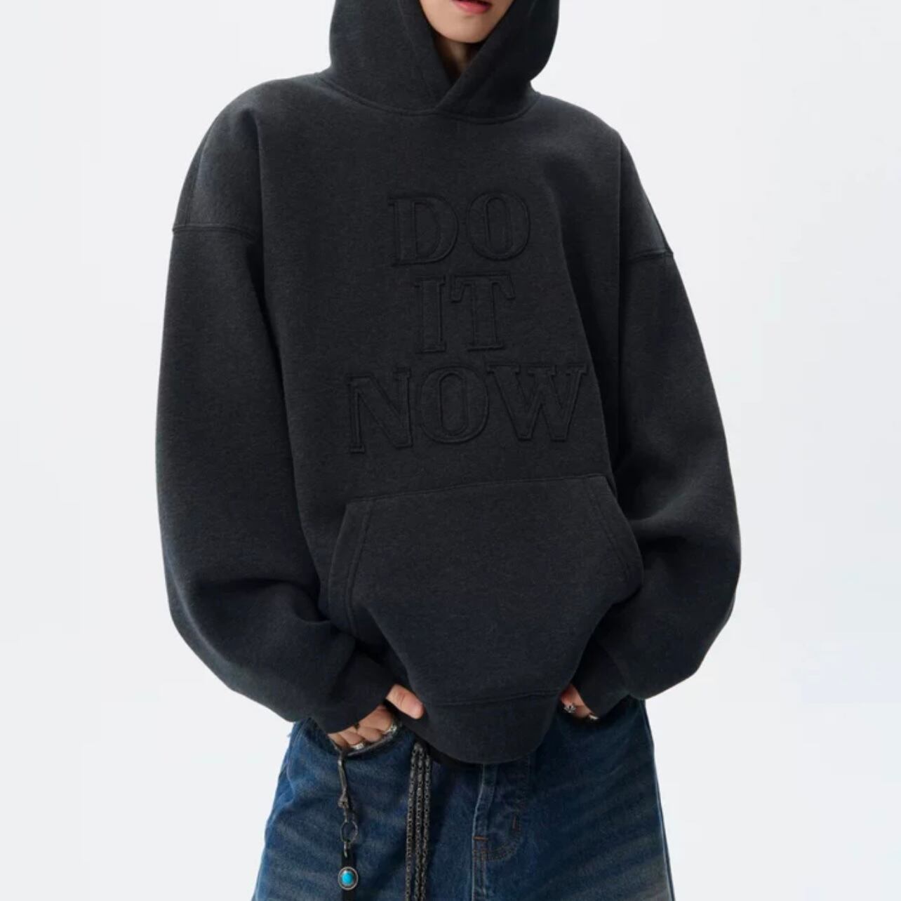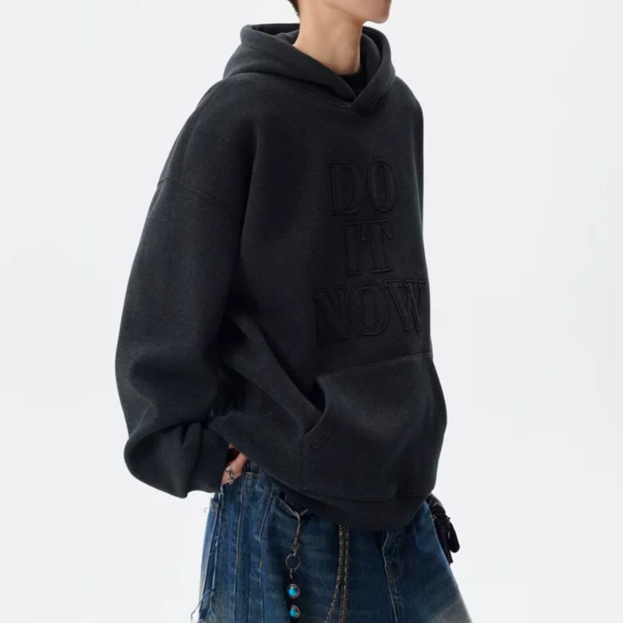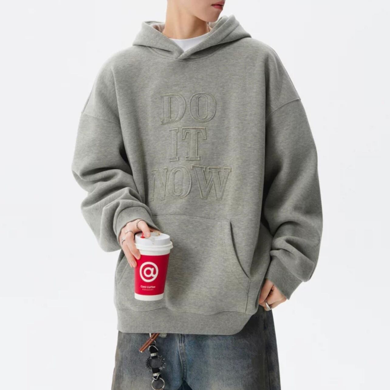 ゆったりとしたシルエットが魅力的な長袖スウェットパーカー。