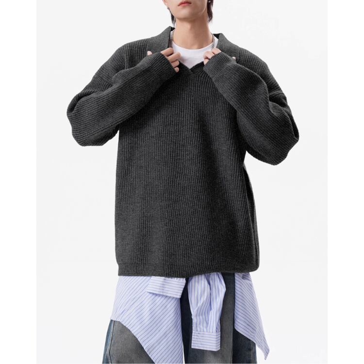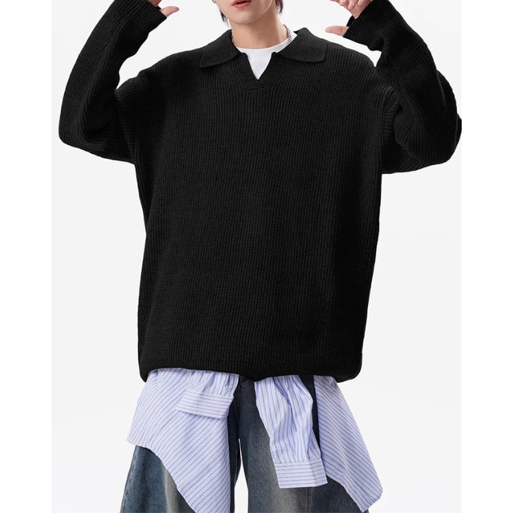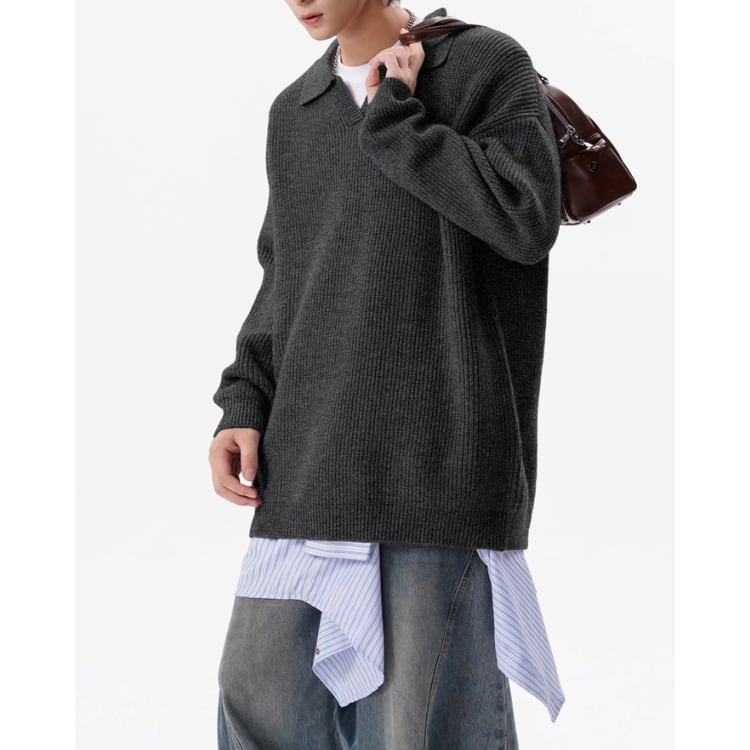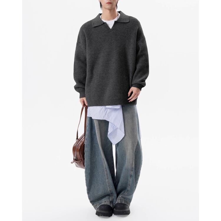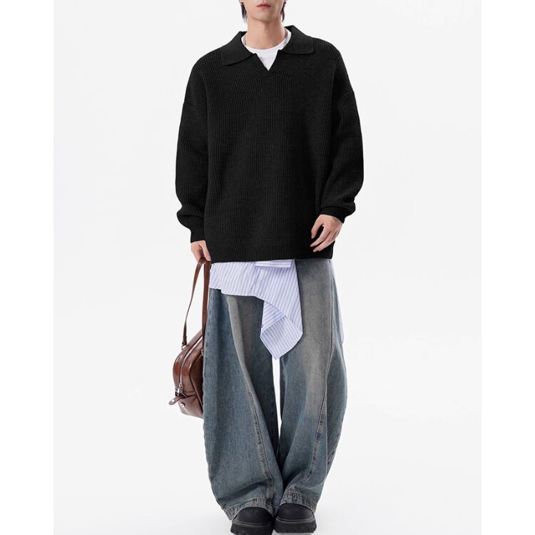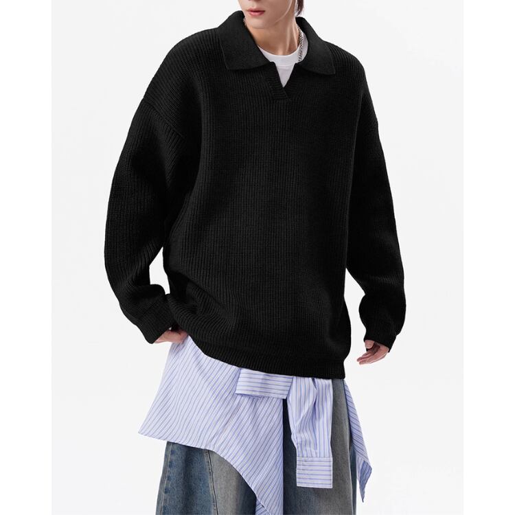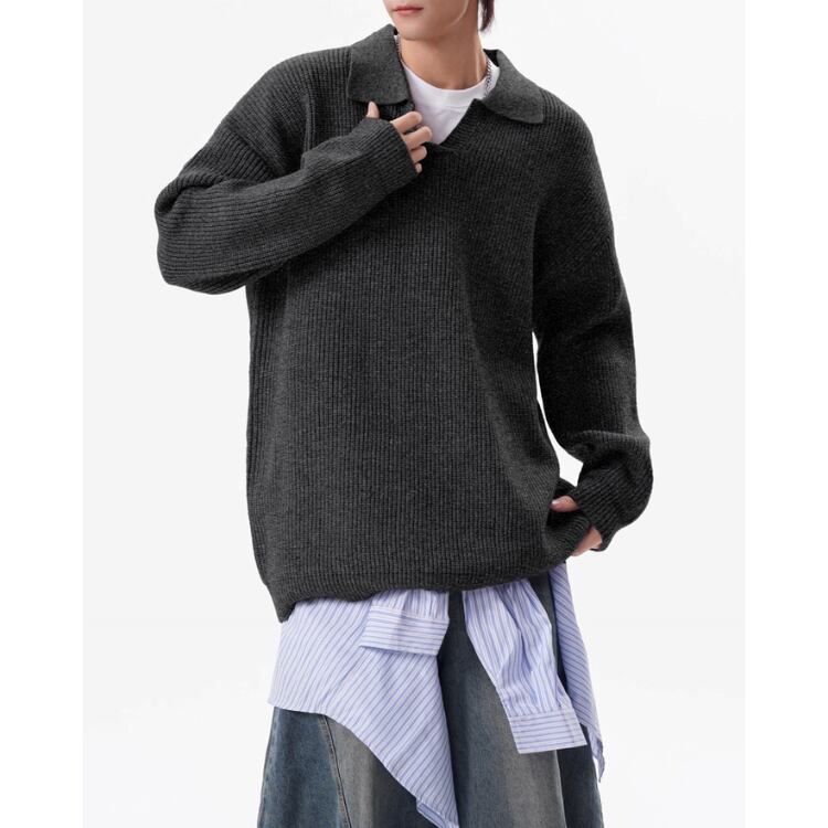 ドロップショルダー ニットポロシャツ ◆3col M00030