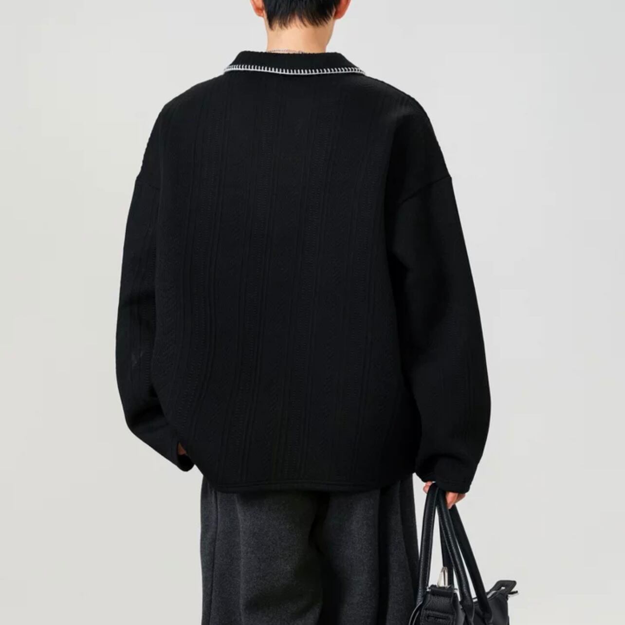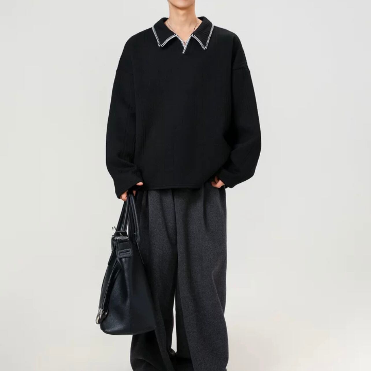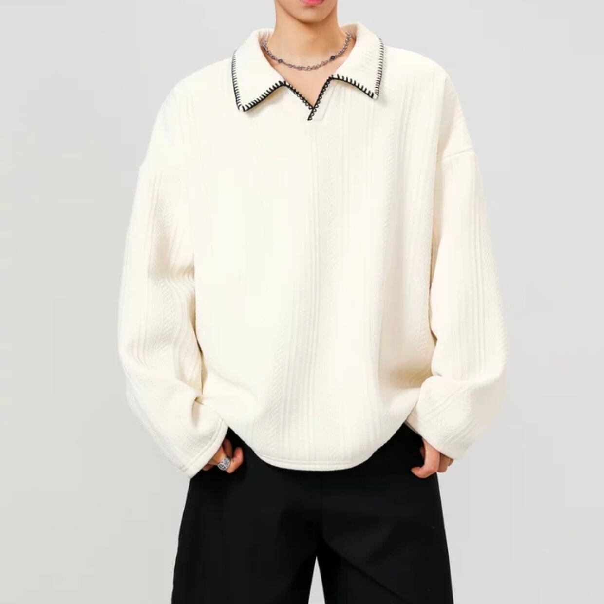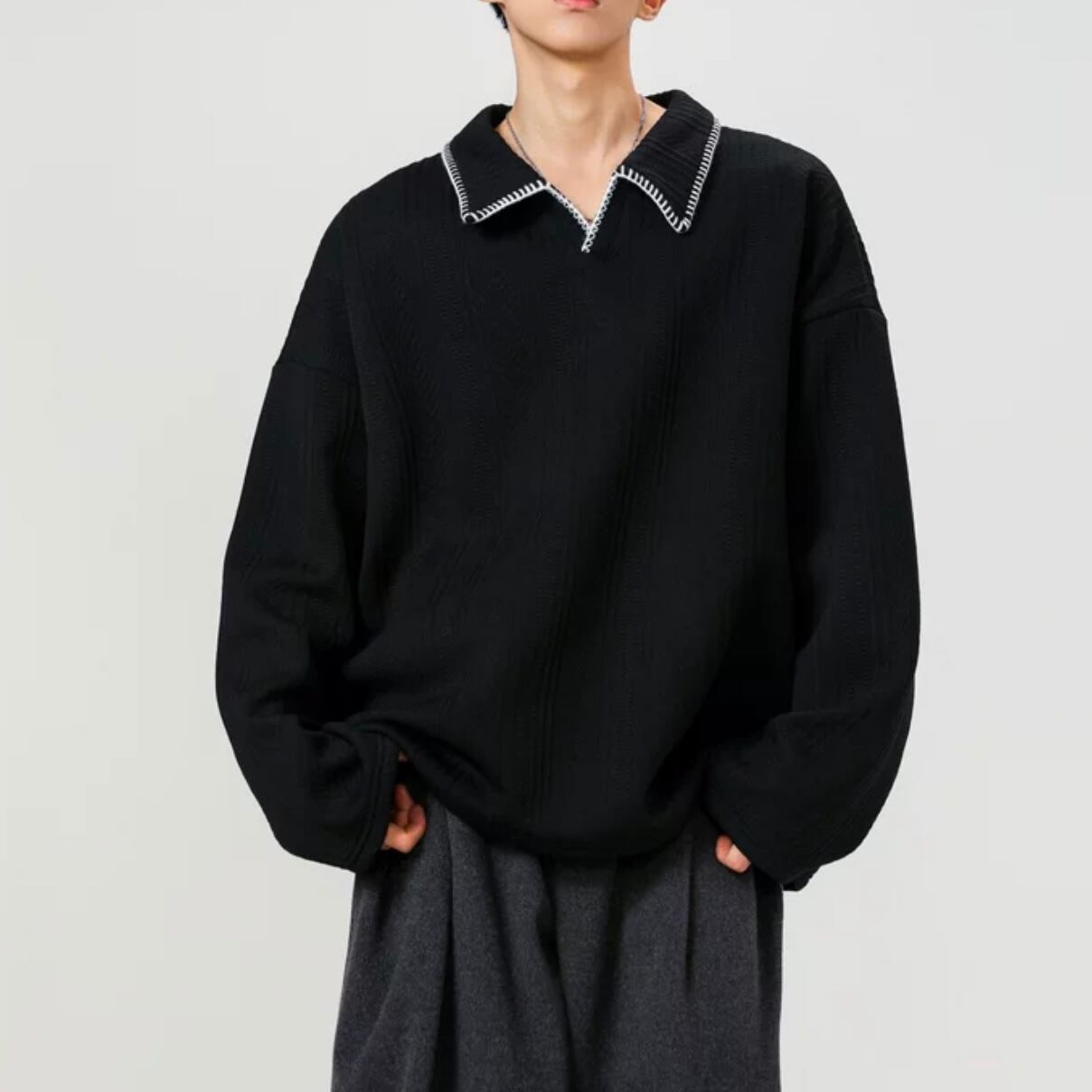 ゆったりとしたシルエットが魅力の長袖ニットポロシャツ。