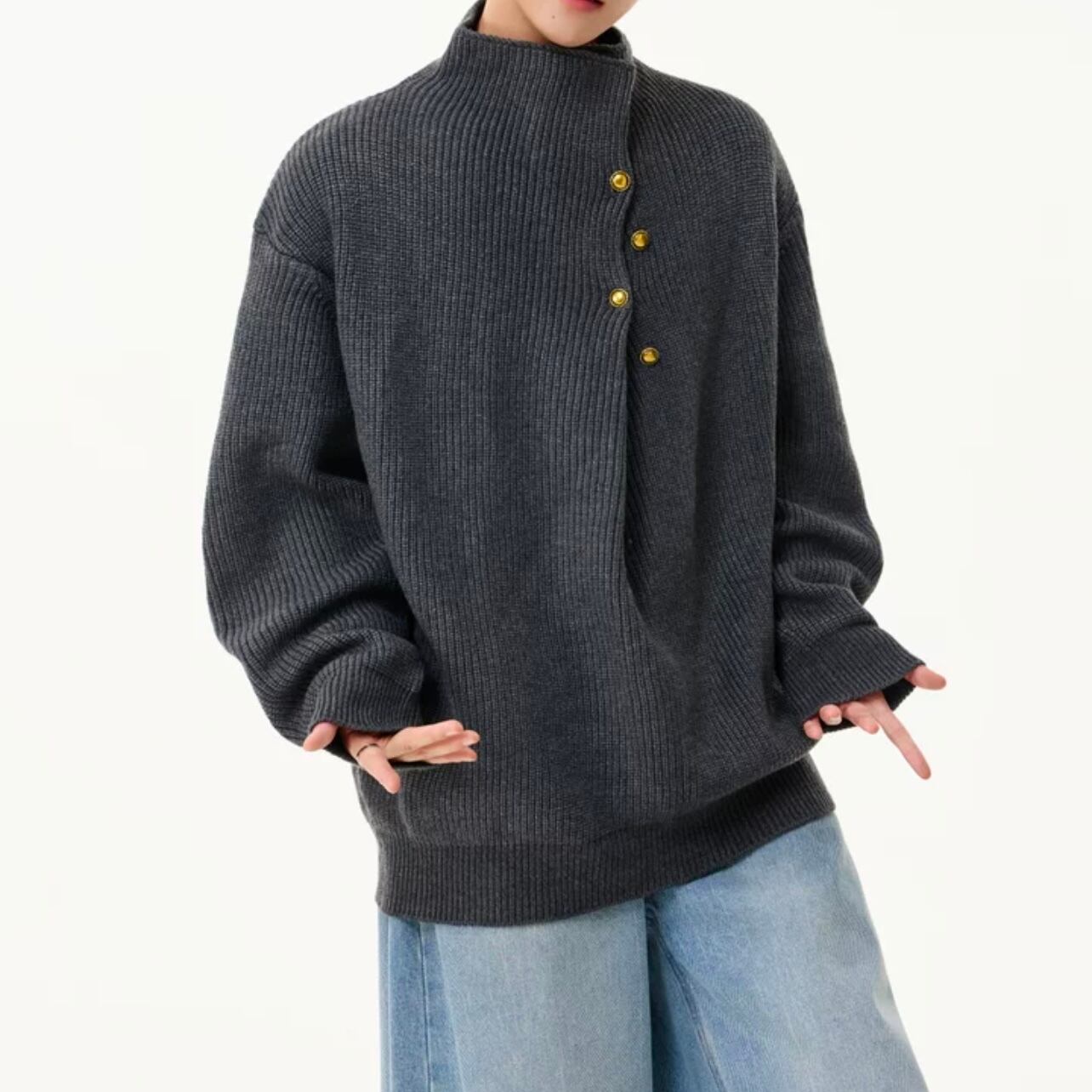 ボタンフロント ミドル セーター ◆5col M00044