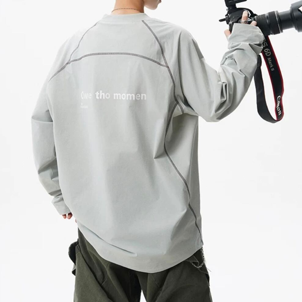 ゆったりとしたシルエットで、リラックスした着心地を提供する長袖スウェット。