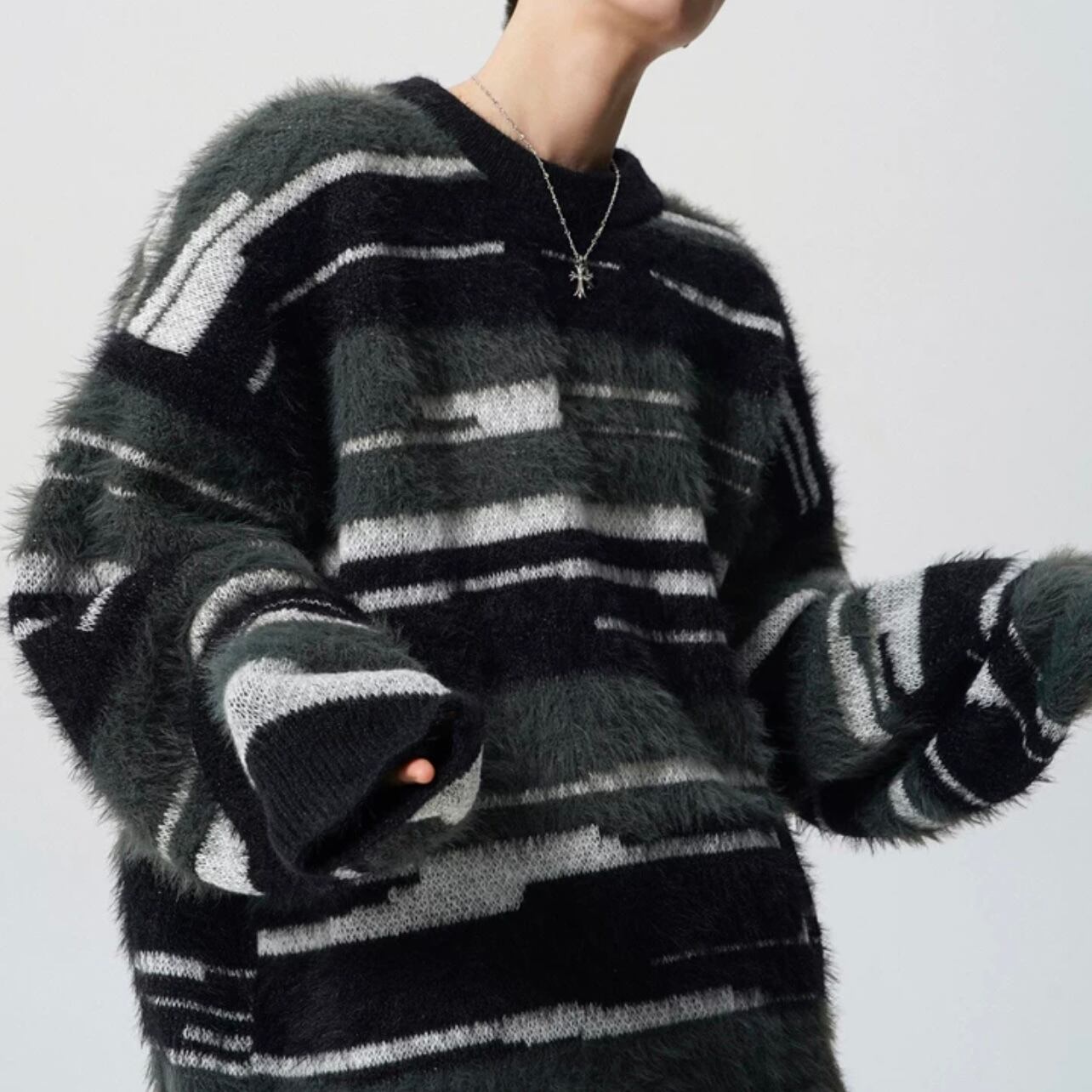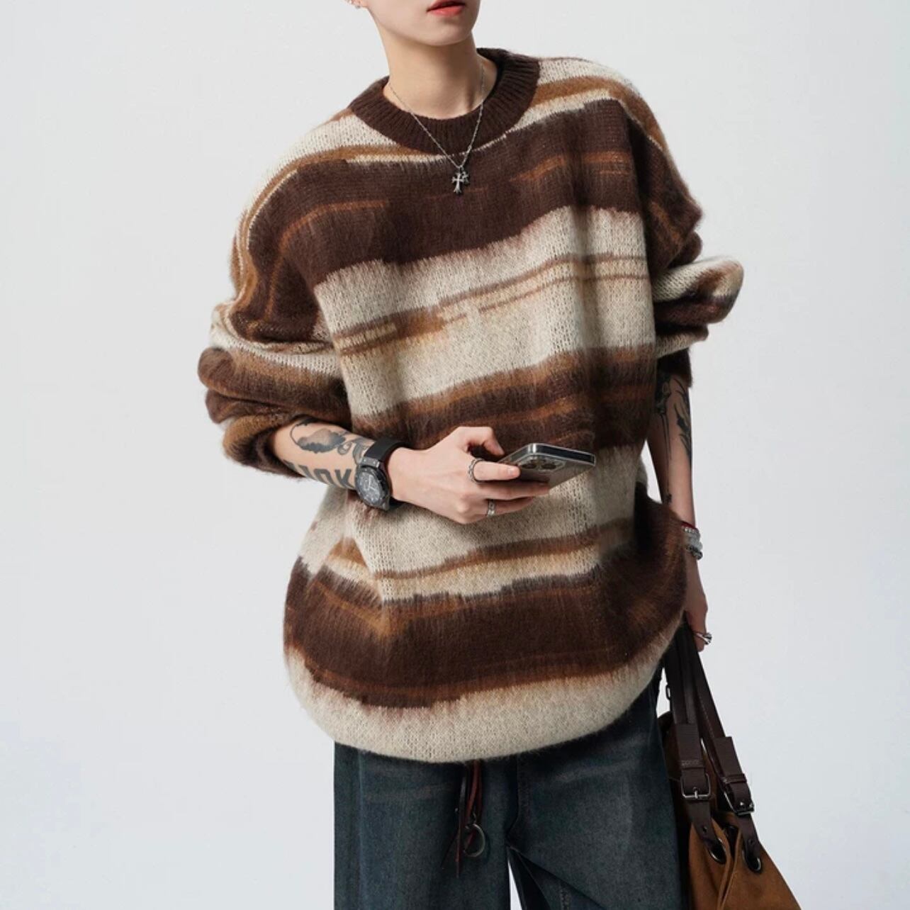 ボーダー柄 長袖 オーバーサイズ ニット ◆2col M00048