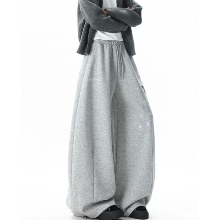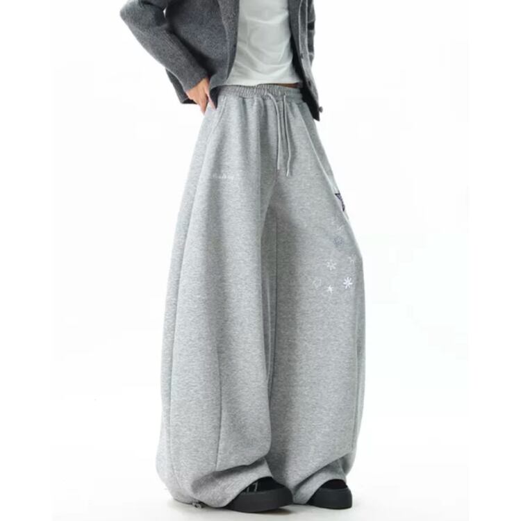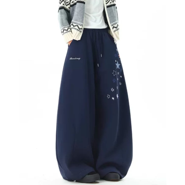 星柄刺繍 オーバーサイズ フルレングス パンツ ◆2col M00049