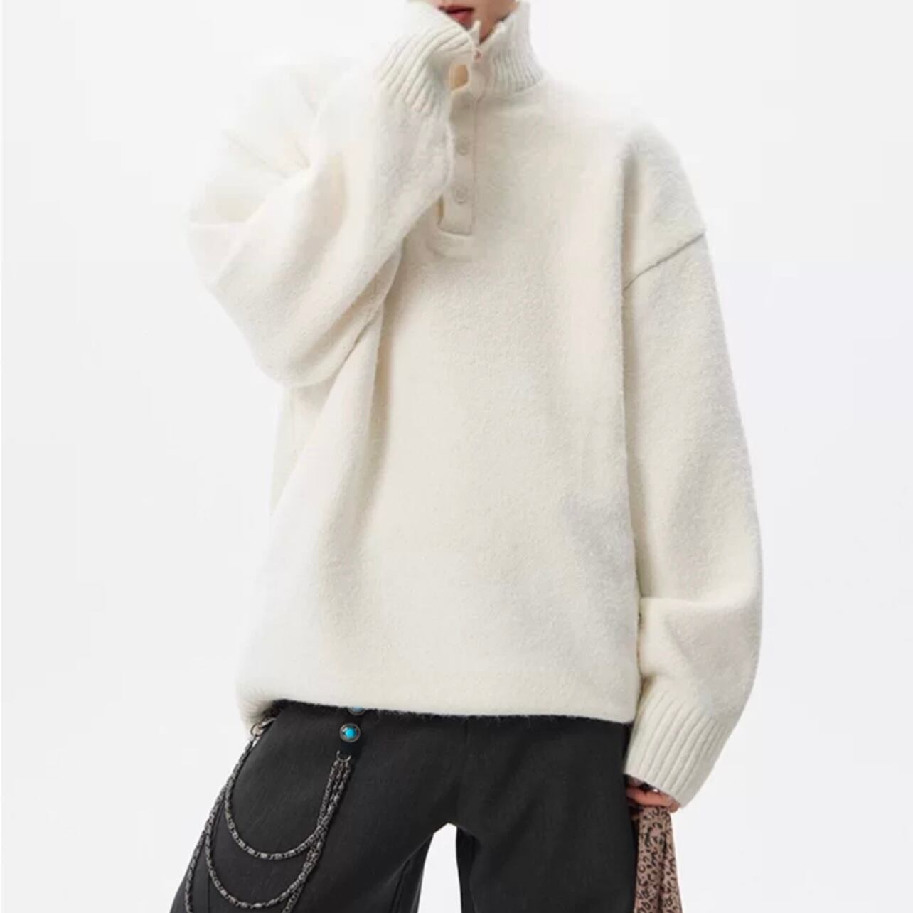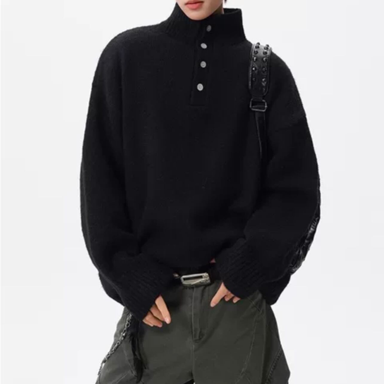 ボタンフロント オーバーサイズ ニット ◆2col M00061
