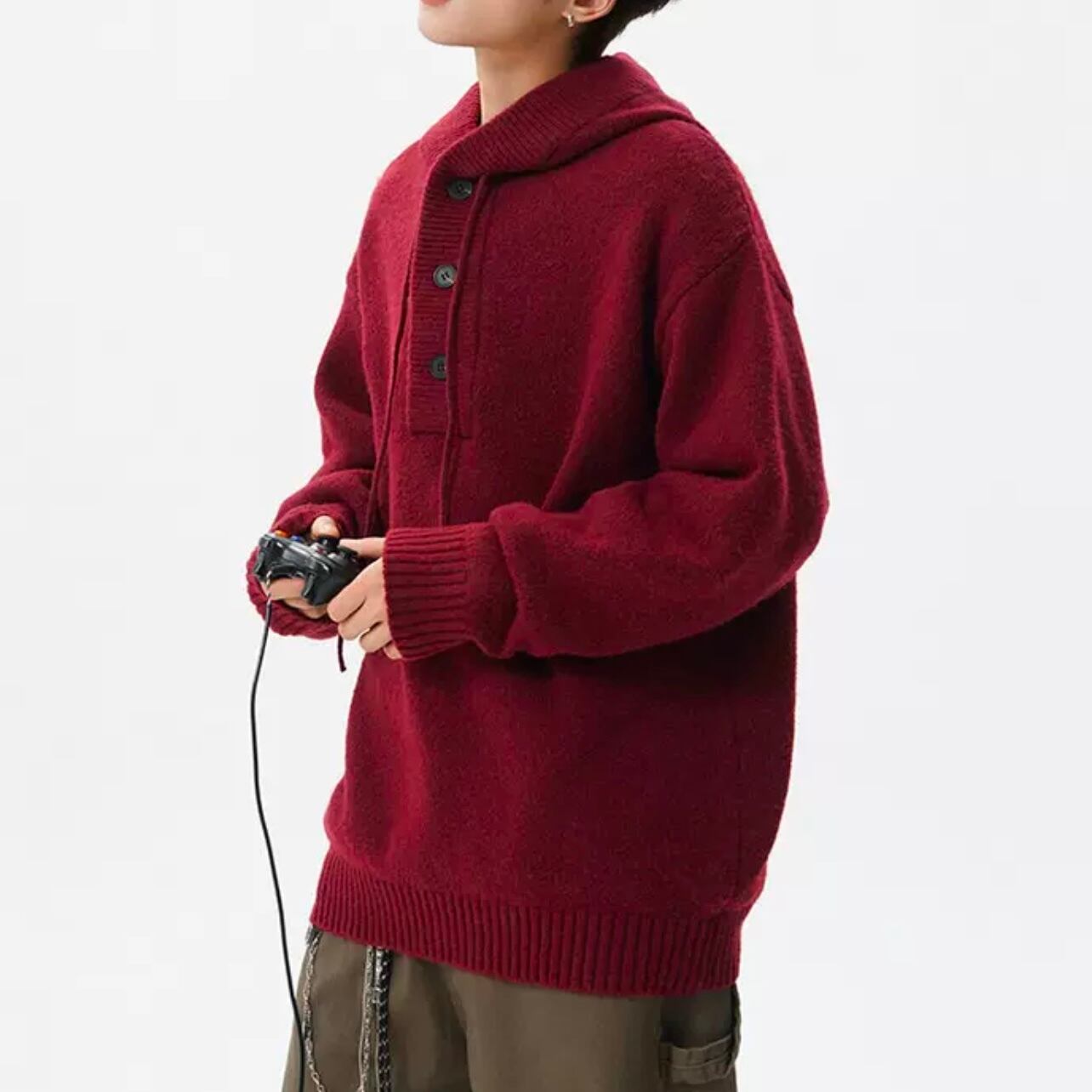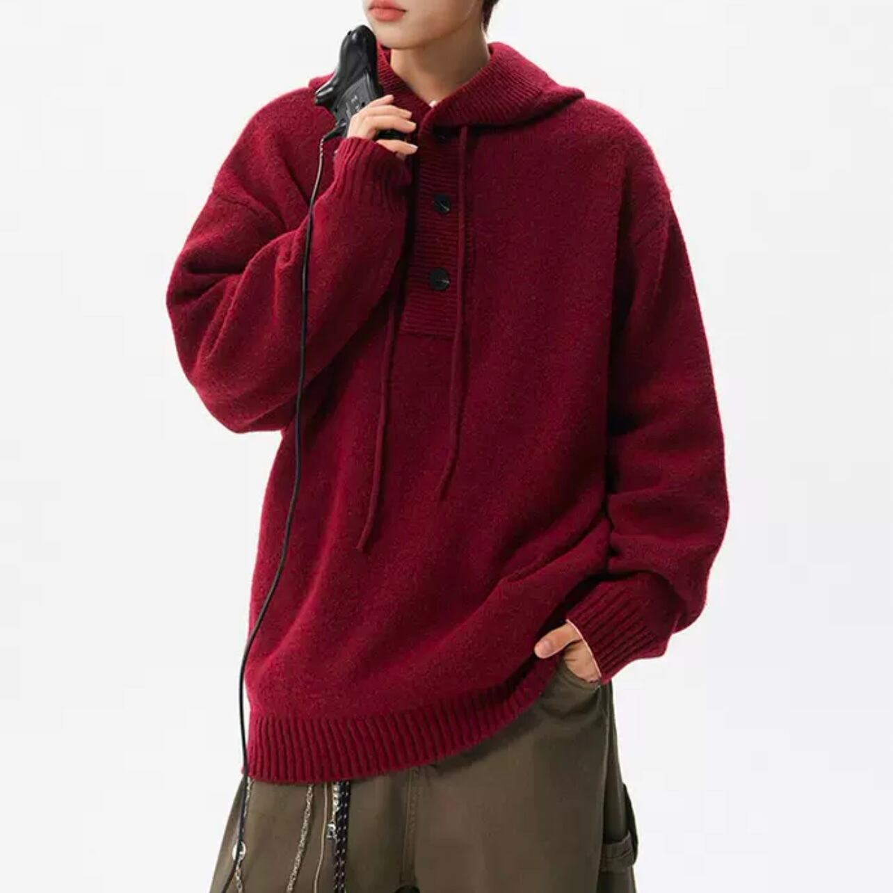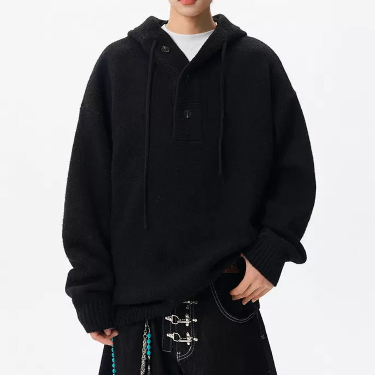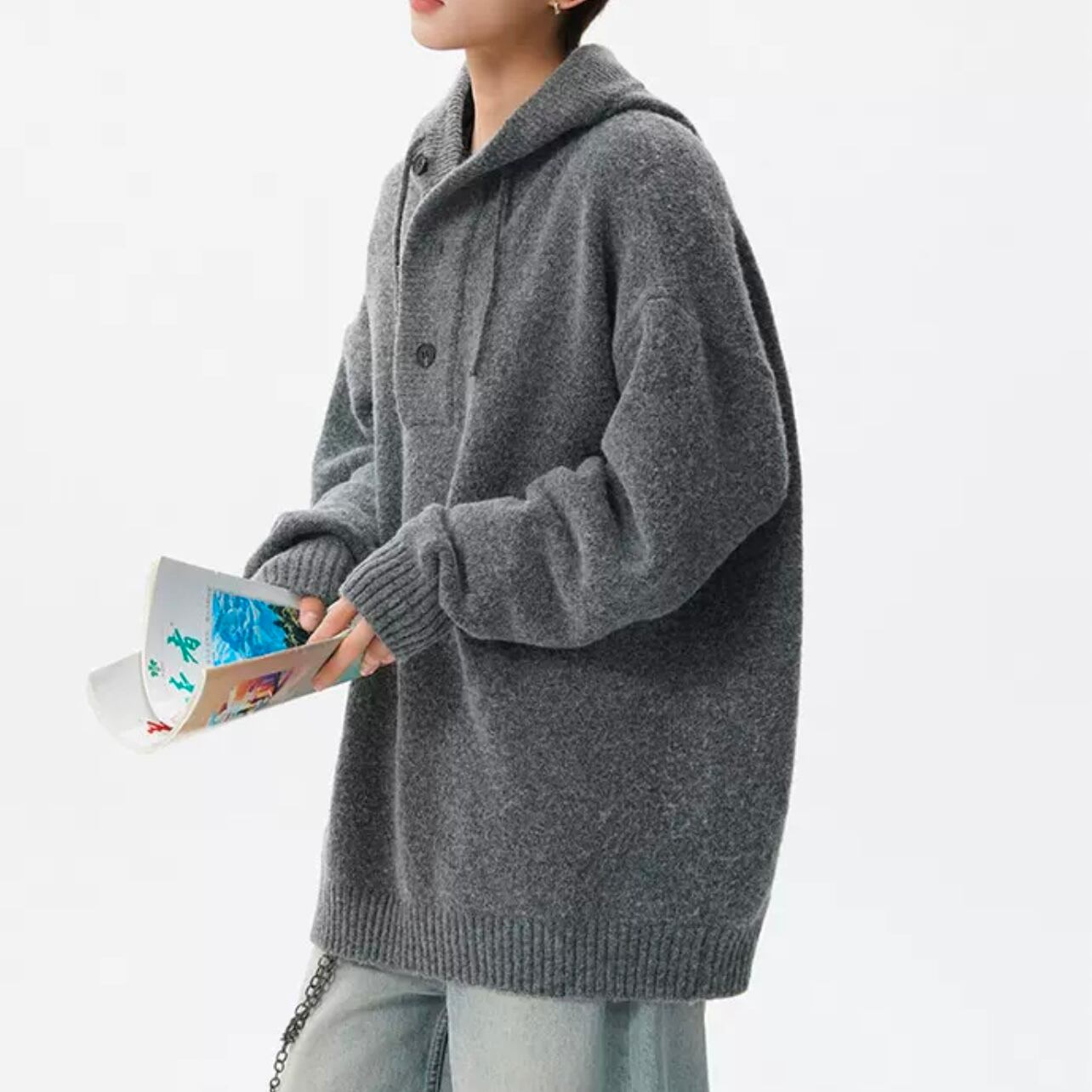 ボタンフロントがアクセントになった、長袖オーバーサイズニット。