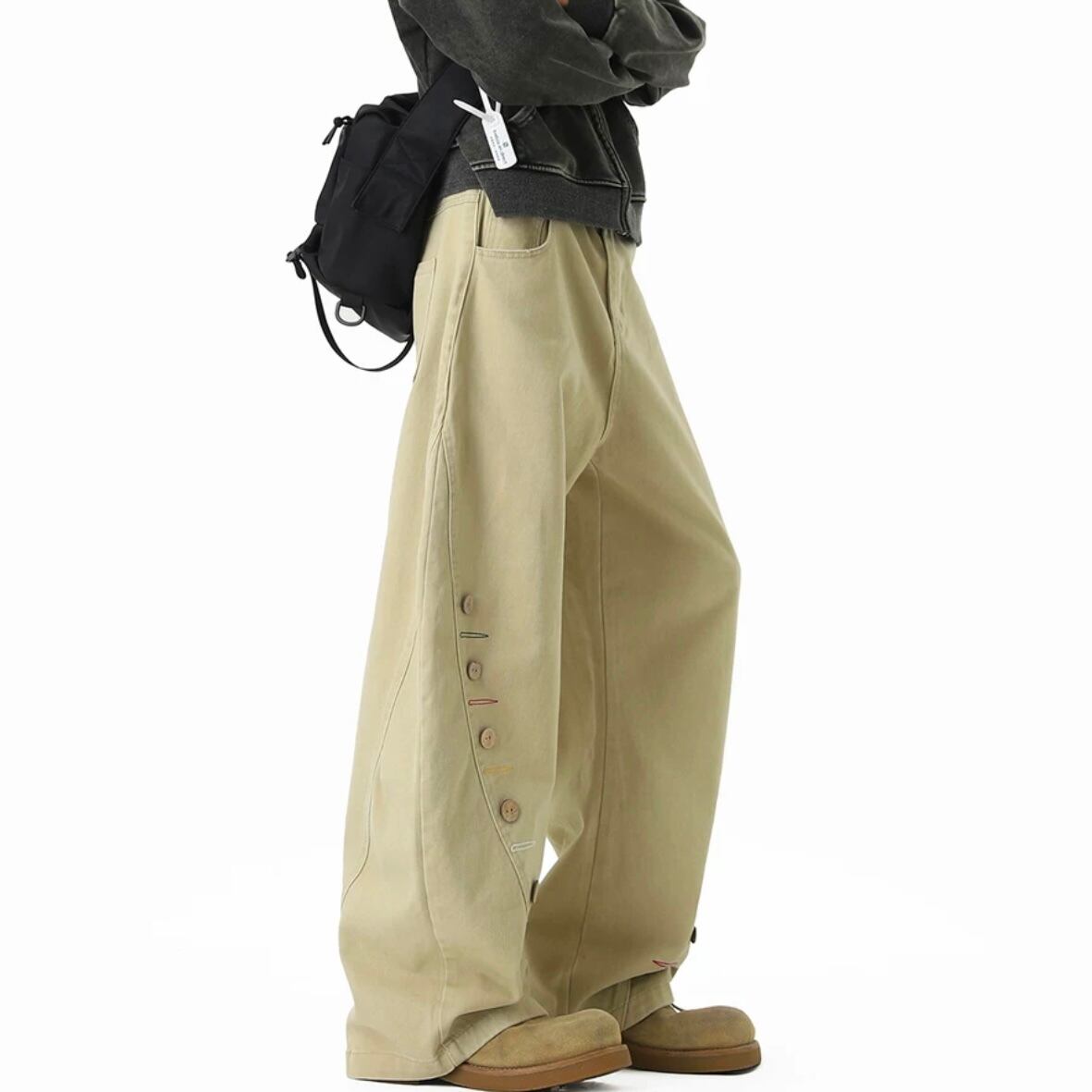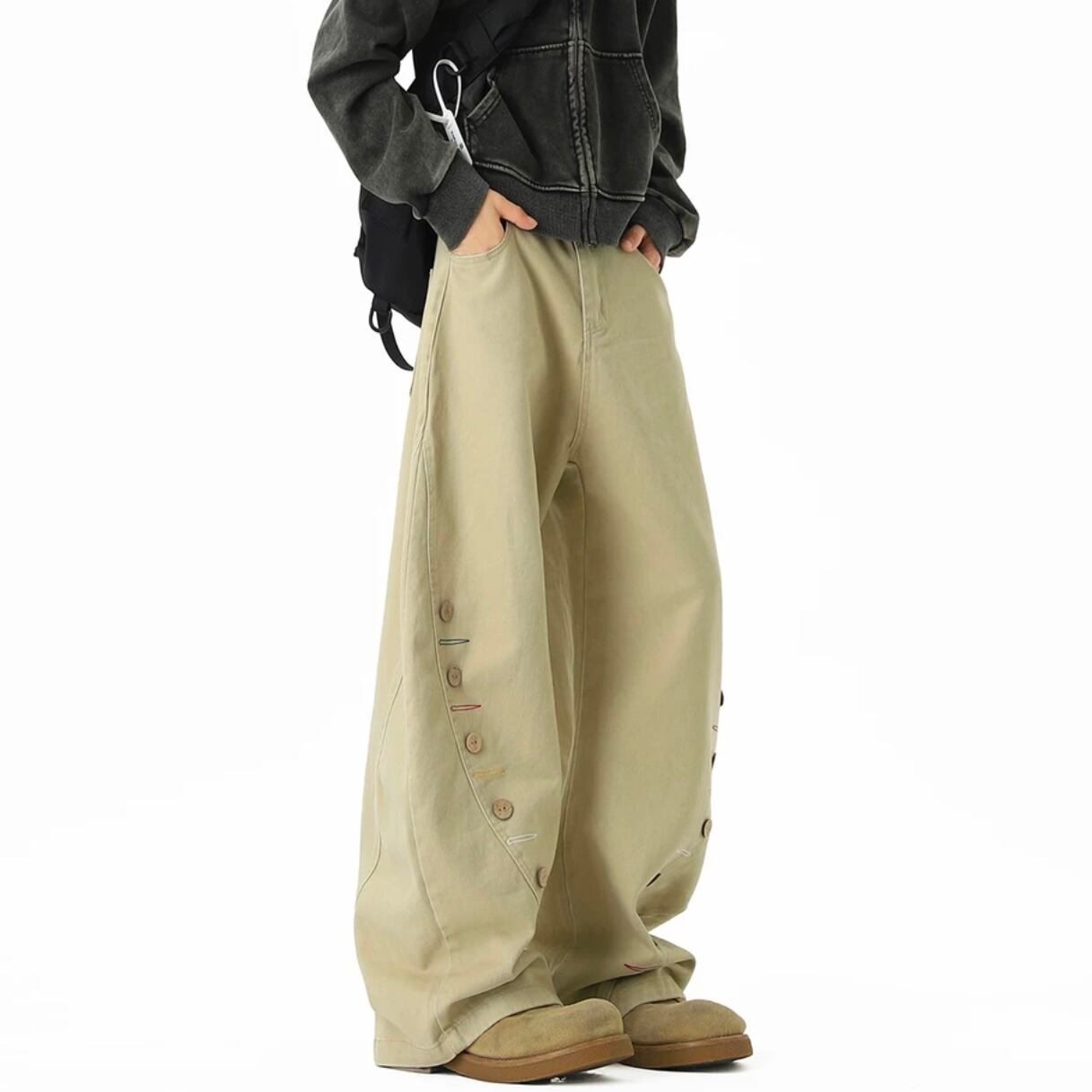 サイドボタン ワイドレッグ フルレングス パンツ M00073