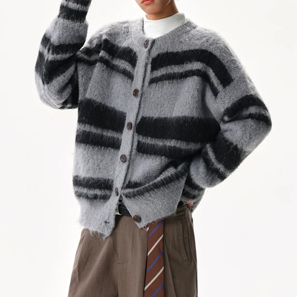 ボーダー柄 ミドル ニットカーディガン ◆2col M00077