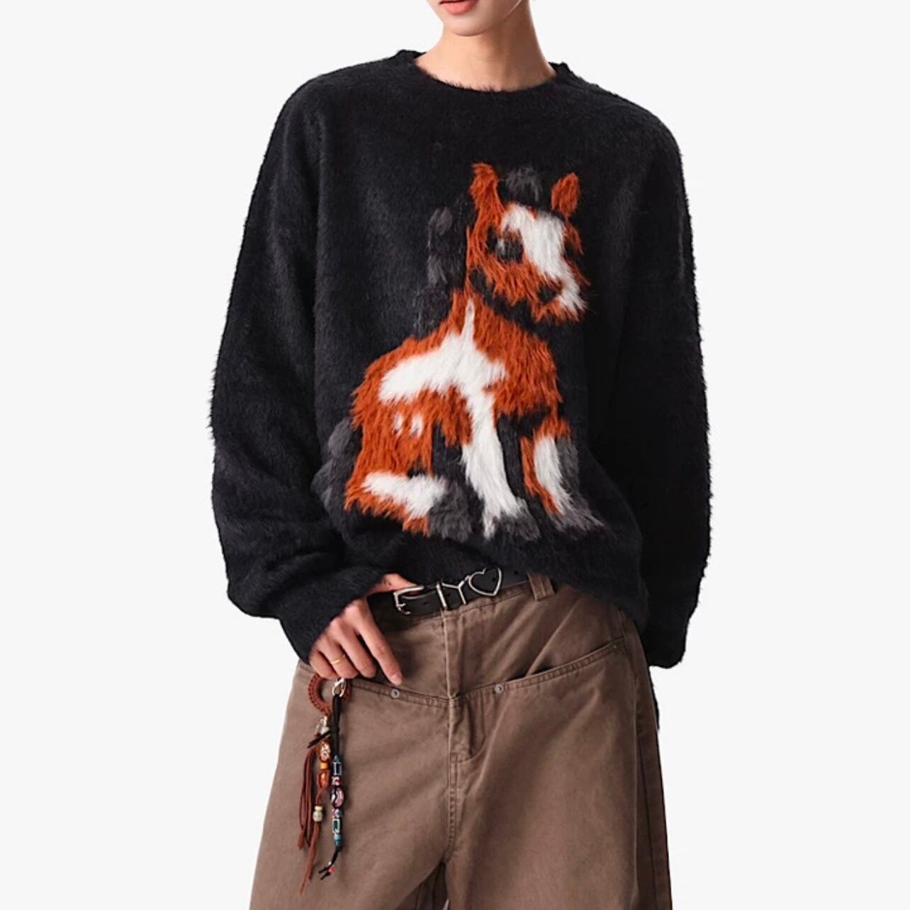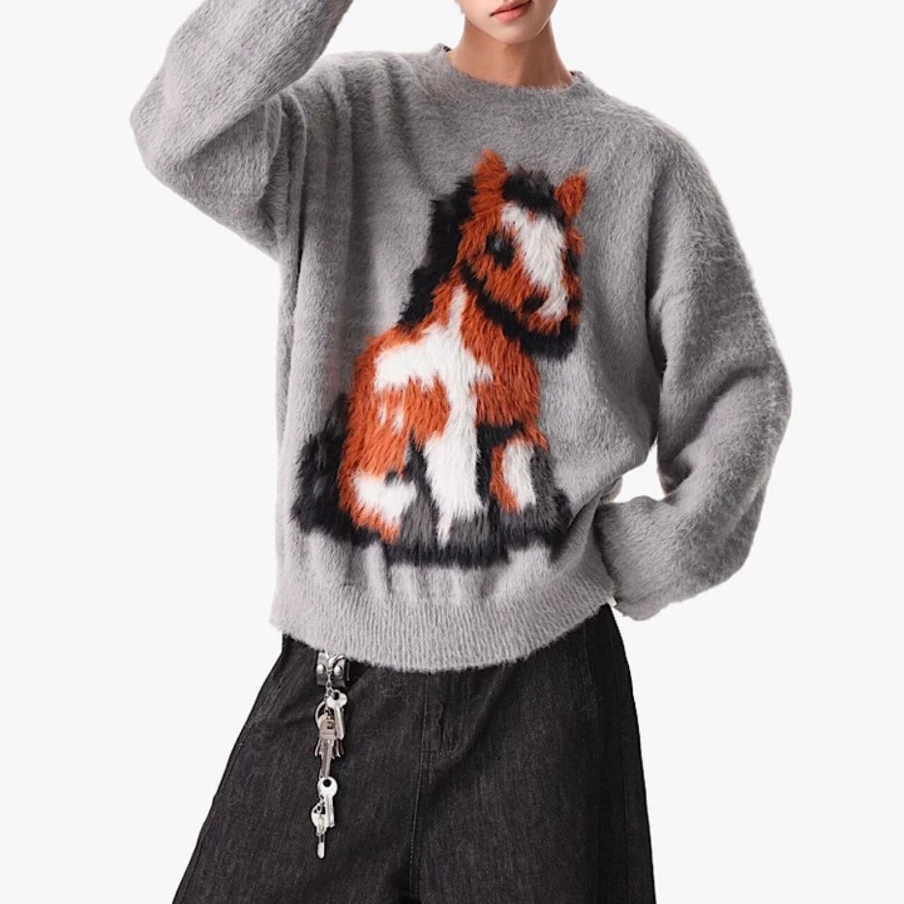 馬モチーフ クルーネック ニット ◆2col M00107