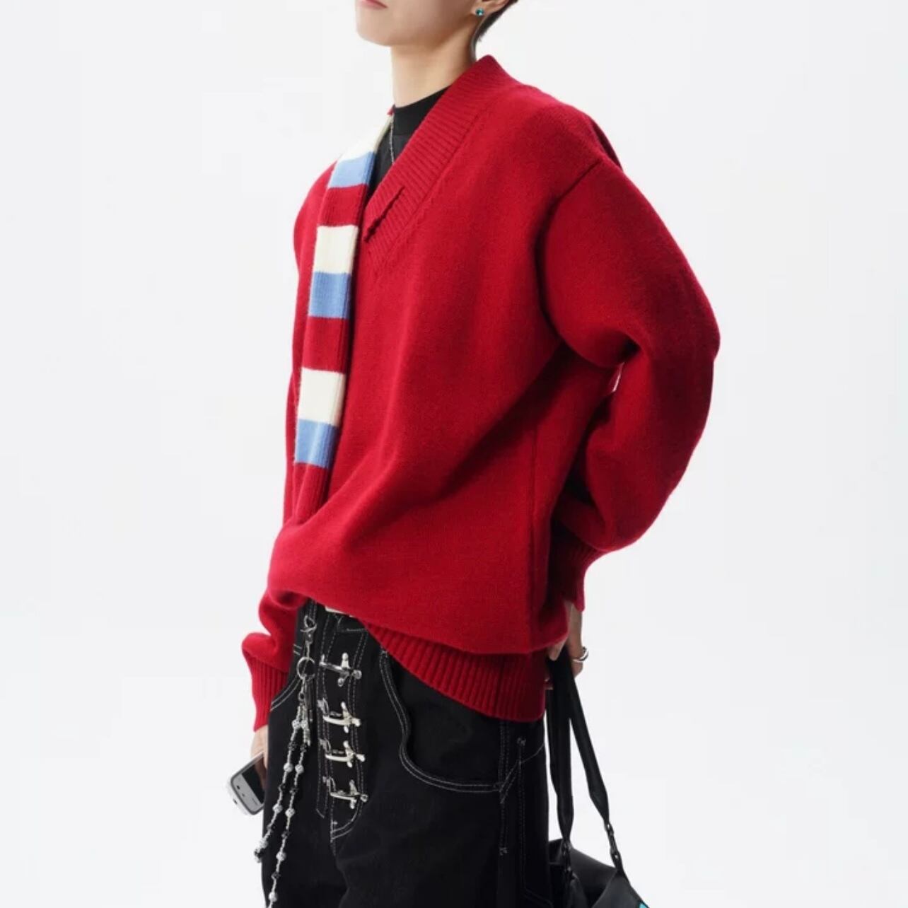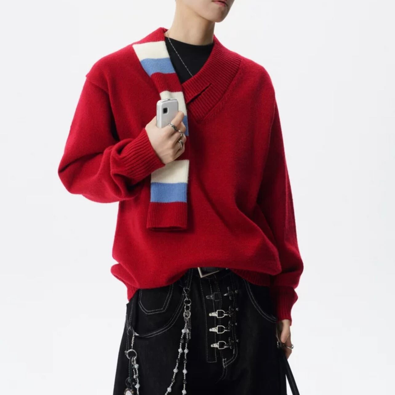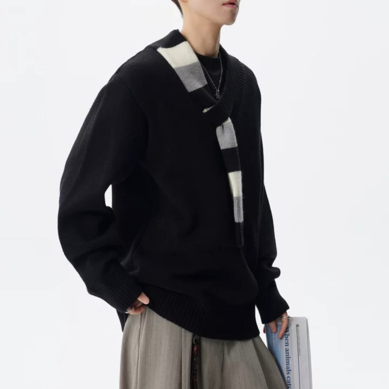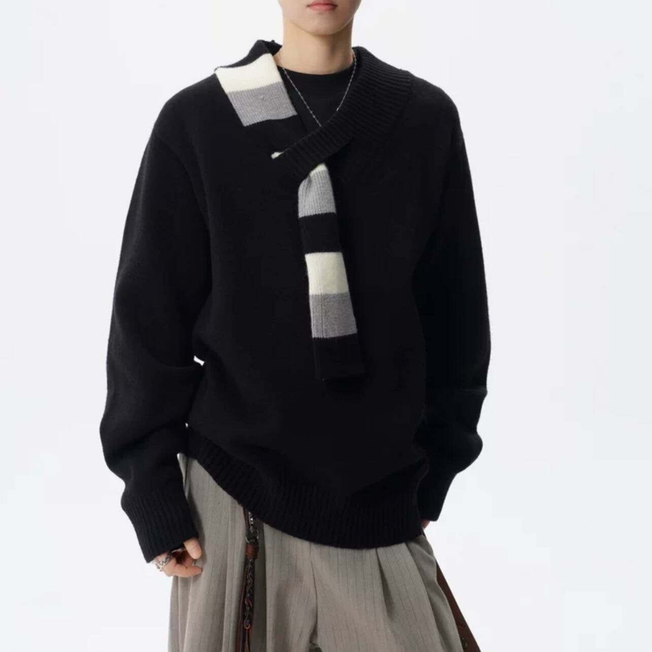 スカーフ付き オーバーサイズ ニット ◆2col M00108