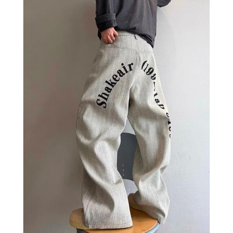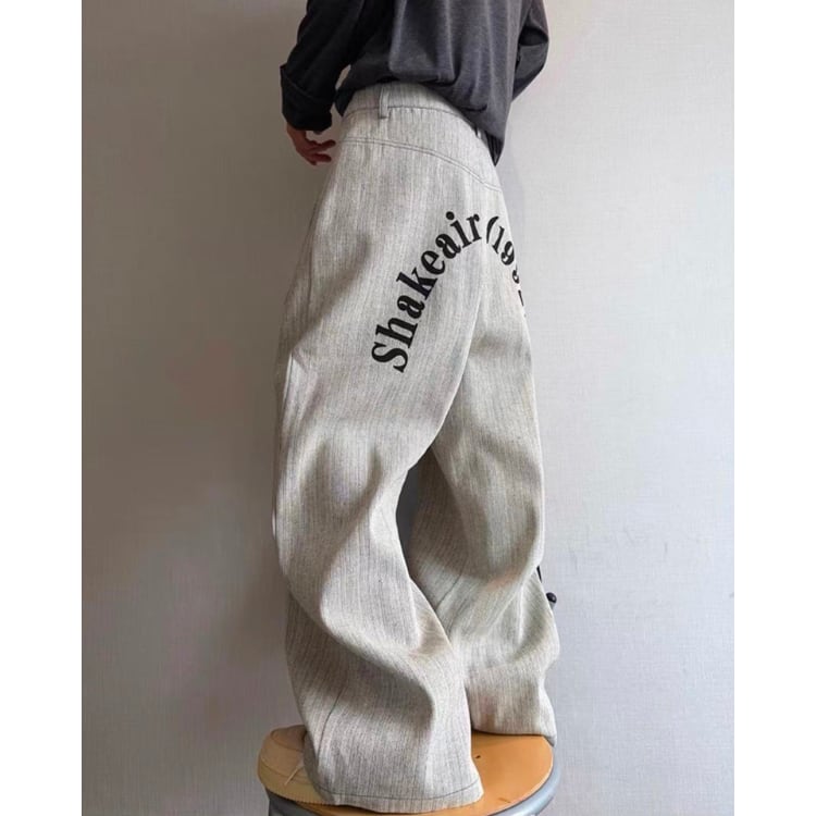 ユニークなロゴデザインが魅力のワイドレッグパンツ。