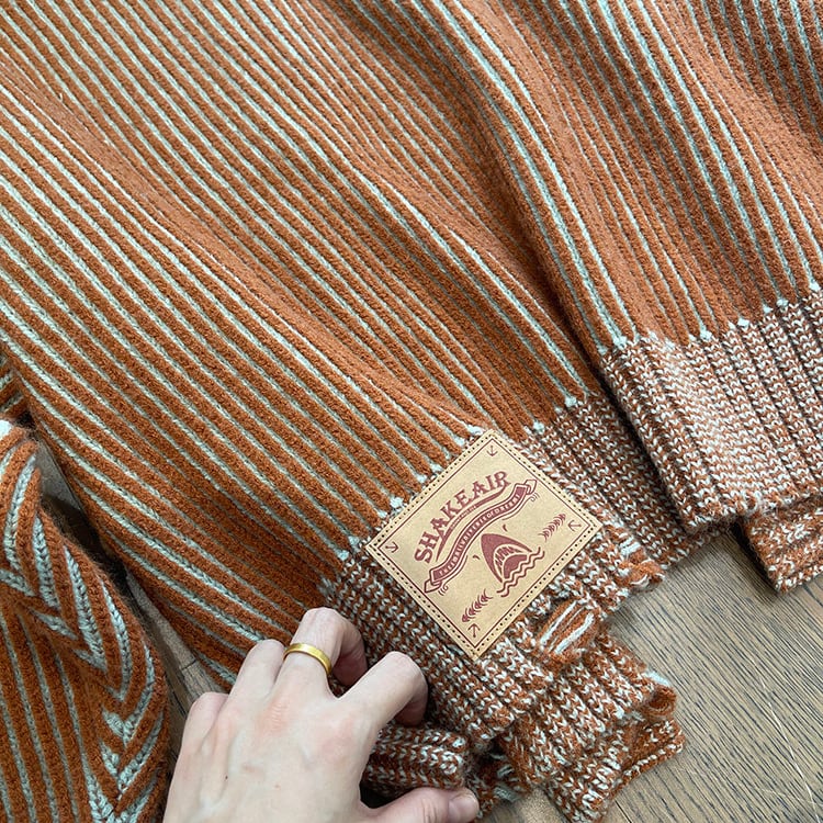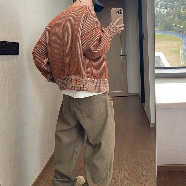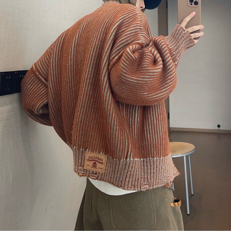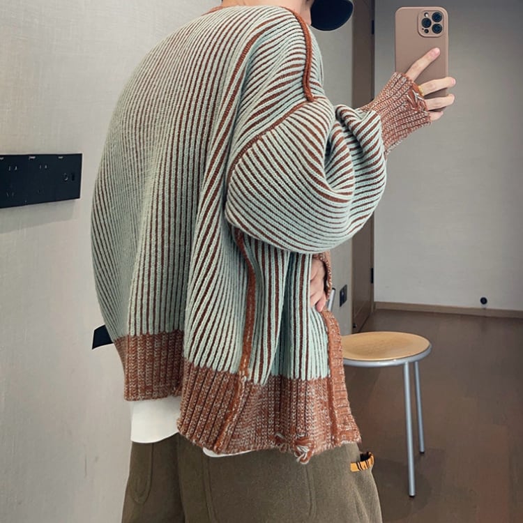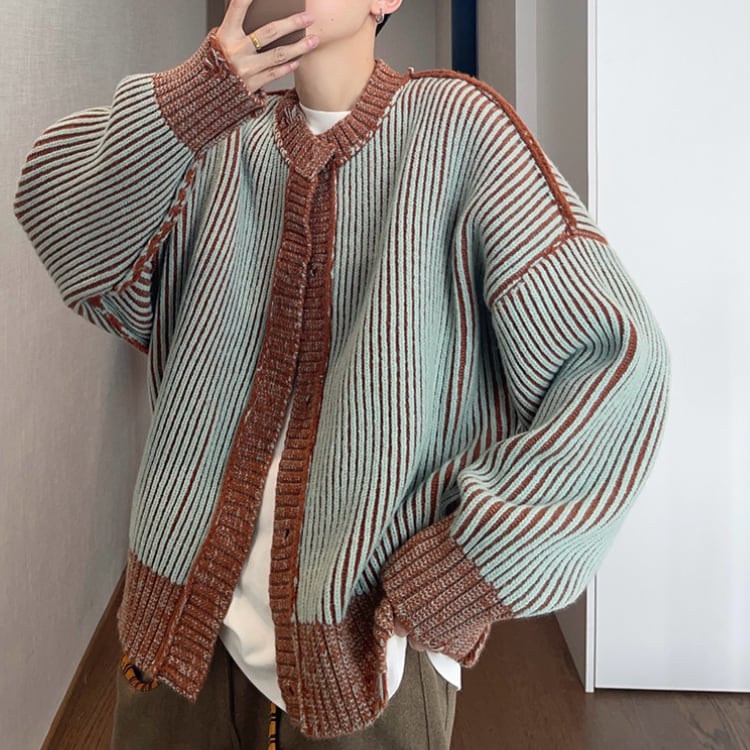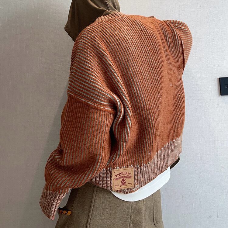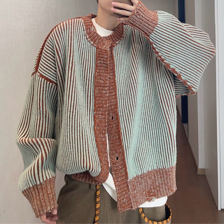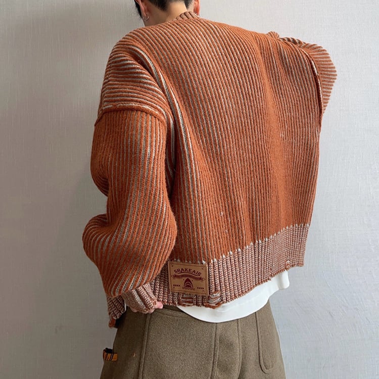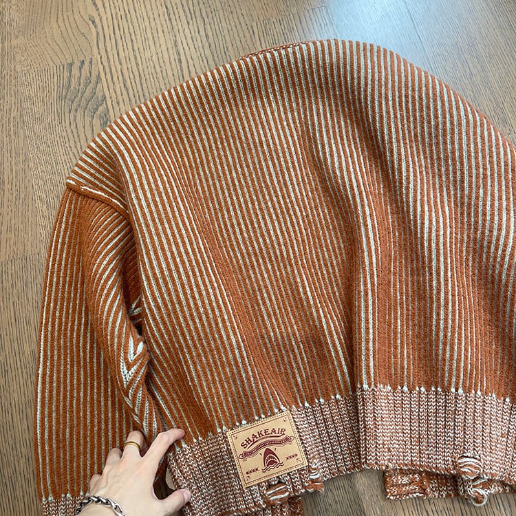 ストライプ柄が目を引く、カジュアルなニットジャケットです。
