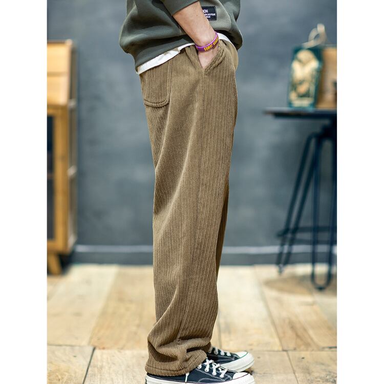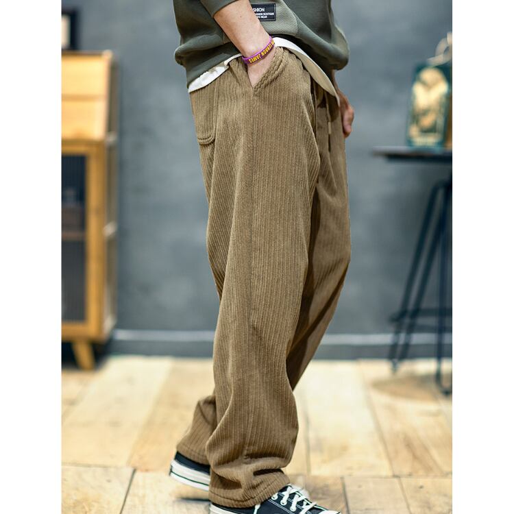 洗練されたカジュアルスタイルを演出するコーデュロイパンツ。 ドローストリングでウエストを自由に調整できるので、快適なフィット感を実現します。 ワイドシルエットが、トレンド感のある着こなしを叶え、都会的な印象を与えます。 ■サイズ 【M】 ウエスト:72.4cm ヒップ:113.1cm 総丈:101cm 【L】 ウエスト:76.2cm ヒップ:116.9cm 総丈:102cm 【XL】 ウエスト:80.0cm ヒップ:120.7cm 総丈:103cm 【2XL】 ウエスト:83.8cm ヒップ:124.5cm 総丈:104cm 【3XL】 ウエスト:87.7cm ヒップ:128.3cm 総丈:105cm 【4XL】 ウエスト:91.5cm ヒップ:132.1cm 総丈:106cm 【5XL】 ウエスト:95.3cm ヒップ:136.0cm 総丈:106cm ※目安となります。測り方により、2〜4cm程の誤差がある場合がございます。 ■カラー モカブラウン / ブラック / ダークグレー ■商品の色味は、お手持ちのスマートフォンの 画面によって実物と若干異なる場合がございます。 ■素材 ポリエステル100% ■【お手入れ方法】 濃色と淡色の衣類は分けて洗濯してください。 ぬるま湯で優しく手洗いし、軽くすすぐ程度でOKです。 黒色生地は、初回〜数回の洗濯で色落ちや毛羽立ちが見られる場合がありますが、素材の特性によるもので不良ではございません。予めご了承ください。 ●●ご購入前に必ずご覧下さい●● こちらをお読みいただき、ご了承いただいた上でご購入をお願いいたします。 →https://shop.motico.jp/about ●注意事項● ・タイミングによっては 商品在庫切れにより注文キャンセルとさせていただく恐れもございます。予めご了承くださいませ。 ・発送までに「1週間〜3週間前後」のお時間をいただきます。 ・こちらは輸入品となります。日本製とは検品基準が異なる為、新品未使用品でもごくわずかな汚れや傷がある場合もございます。 ・光の当たり具合やお使いの端末の関係上、実際の色合いと若干差が出る可能性がございます。 ・イメージ違いやサイズ交換等、お客さまご都合による交換、返品は対応出来かねます。 ■梱包について---------------------------------------------- エコに配慮して簡易包装にてお届けさせて頂いております。